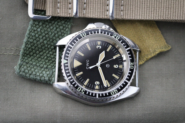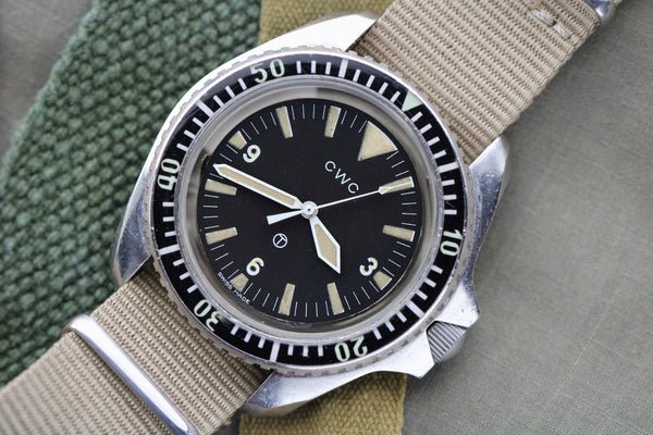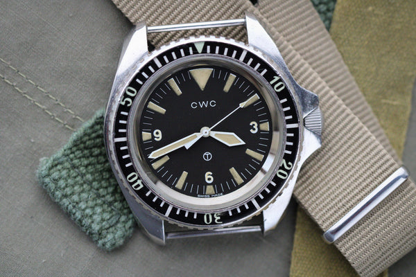 CWC won the contract to supply an automatic dive watch to replace the Rolex milsub in 1980, and in 1980 and 1981 they supplied watches with a dial similar to the Omega Seamaster 300 from the 1960s and an acrylic bezel insert. In 1983, the watch was changed to a quartz movement and was issued sporadically up until 2000, with most of the watches being issued during the 1990s. The case was similar to the Monnin case popularised by the Heuer reference 844 from the late 1970s, although with some small variations across the years. The automatic dive watch NSN ends 9237697, and the quartz dive watch NSN ends 7573314.