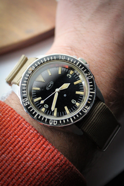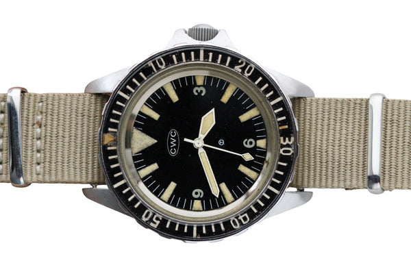 Given how different this watch is from all other CWC dive watches, there has long been debate about whether this watch was actually supplied by CWC. Ray Mellor was categorical that CWC did not supply the watch. "It’s obvious - if the movement is somebody else’s or one that we’d never used, the case is made by a casemaker who knew us but didn’t necessarily know what it was being used for, and if the dial is marked with CWC not by us, then it’s a fake!"