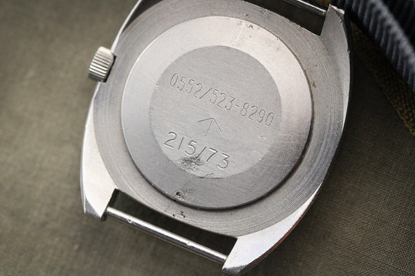 The way to tell which branch a vintage watch was commissioned for was to look at the back. W10 denotes the British Army issue, 6BB means that the watch was issued to the Royal Air Force, 0555 Royal Marines and 0552 for the Royal Navy.