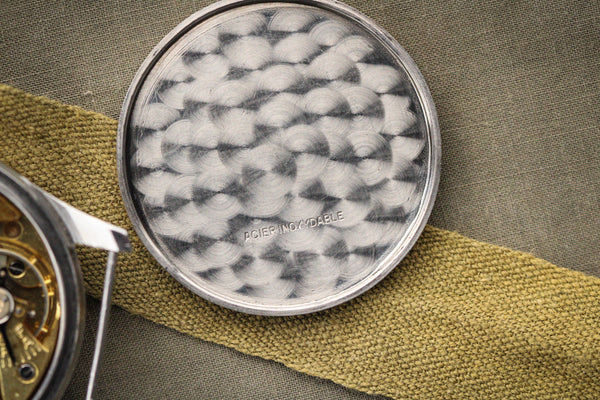 Following on from above, what else is cool about this Lemania, is the case back markings. This example has HS9 (Hydrographic Survey) on the back, a large percent of these have been struck out and their 0552 NATO Stock Number engraved above.