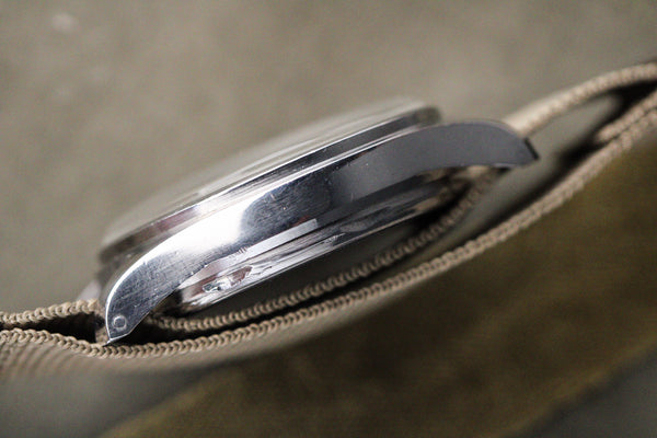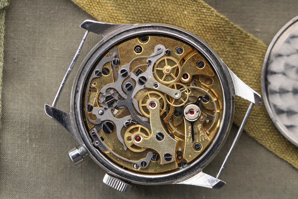 Today's example is a Series 1 that has been issued to the Royal Navy Hydrographic Survey, the Series 1 was issued between 1945-1950 and were fitted with two variations of Radium Dials, the earliest being sterile (like the example we have for sale: here) and with 15CHT Movements. Around the early 60s the MOD basically gathered all of these Series 1 Chronographs up and redialled them in Black or White with Tritium Lume. This was the case for all Lemania Chronographs at the time. Though some series 1 escaped and are quite rare to find in the Wild.