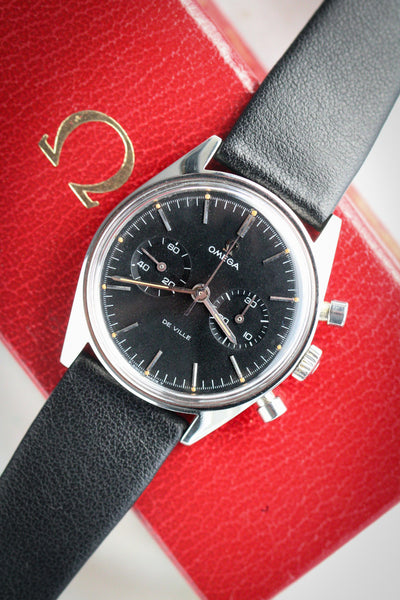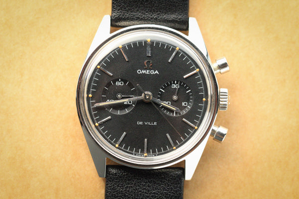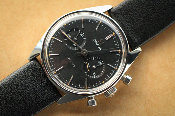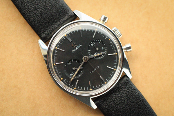 The Omega DeVille chronograph reference 145.017 is a criminally underrated watch. First introduced in 1968, today's example dates from this first year of production, this bi-compax boasts a number of things that we love about vintage chronos. It has a compact 35mm stainless-steel case with a screw-down caseback.