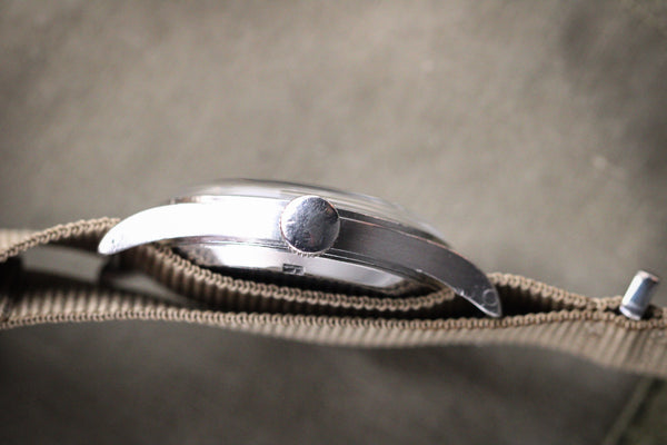 The watches also had to have a black dial, Arabic numerals, luminous hour and minute hands, luminous hour markers, a railroad minute track, a shatterproof crystal, and a stainless-steel case. Powering them would be 15-jewel movements, measuring between 11.75 and 13 lignes.