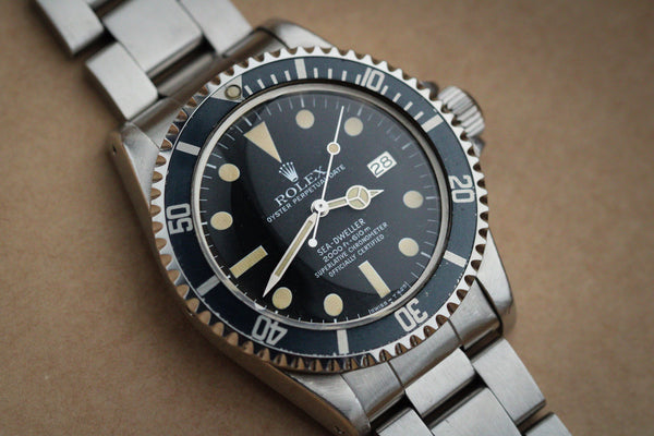 Today's example is from 1979 and features a "Mark I" dial. This was the second white dial variation after Rolex made the switch away from the "Double Red" to the "Great White." This example is in lovely unpolished honest condition. Sea-Dwellers were typically used for diving, so not many survived intact. This Dial has aged beautifully and has developed a lovely lume colour.