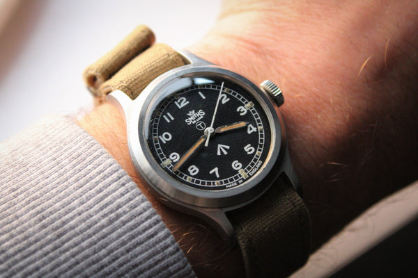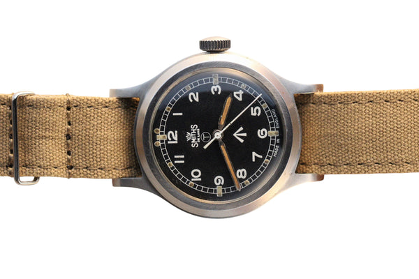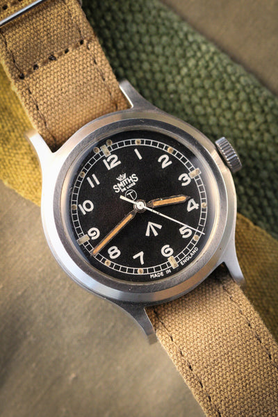 During the 1950s, Smiths were commissioned by the British Government to produce a “General Service” Wristwatch which was to be used across all branches of the UK armed forces and was to be manufactured to the precise specification of the Ministry of Defence (MoD). The British government was concerned about the reliance on overseas supply of Wristwatches, which had been an issue during the second world war and subsidised Smiths / dangled lucrative contracts in front of them to foster British manufacture of Wristwatches.